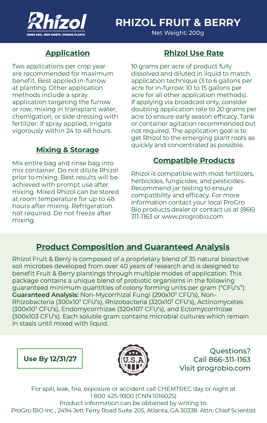 - Natural Defense: Rhizol is carefully curated to provide fruit and berry plants with the natural ability to fend off soil pathogens that can be harmful to your fruit and berry plant yields. Rhizol establishes a natural and protective shield around your plant roots.
