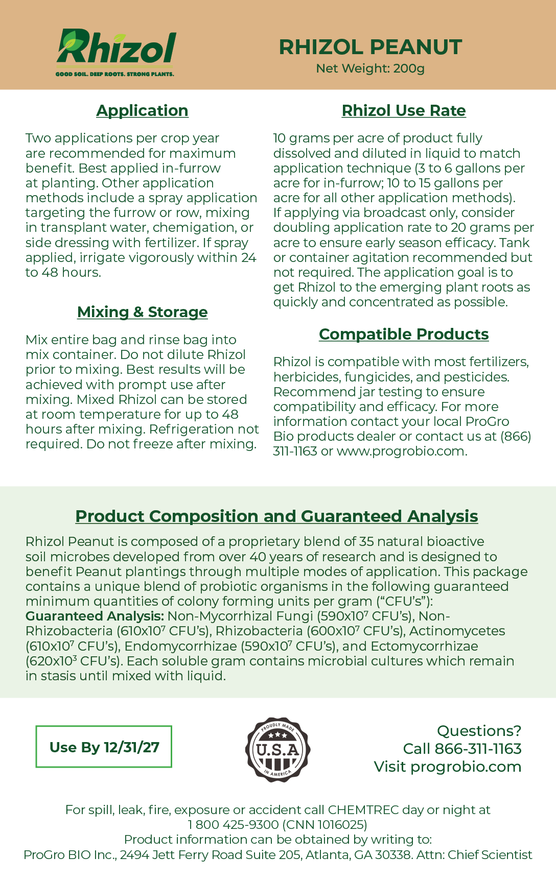 This Rhizol product is formulated for Peanuts and available in varying acreage sizes. Offered in packs for 20 and 40 acres. Check the Dissolvable Rhizol Soil Inoculant Instructions for application method, use rate, mixing and storage instructions, as well as product compatibility.